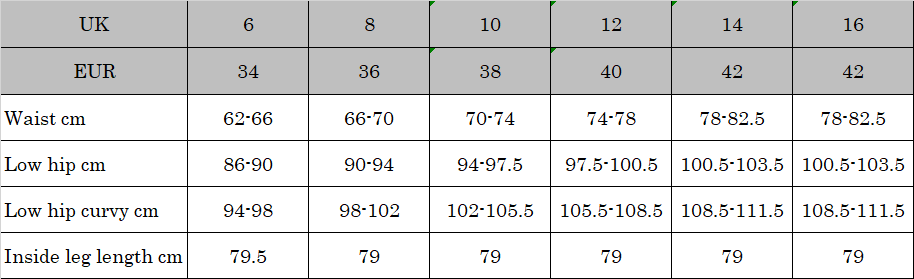 ②High waist with a zip fly and a concealed button and hook-and-eye fastener.